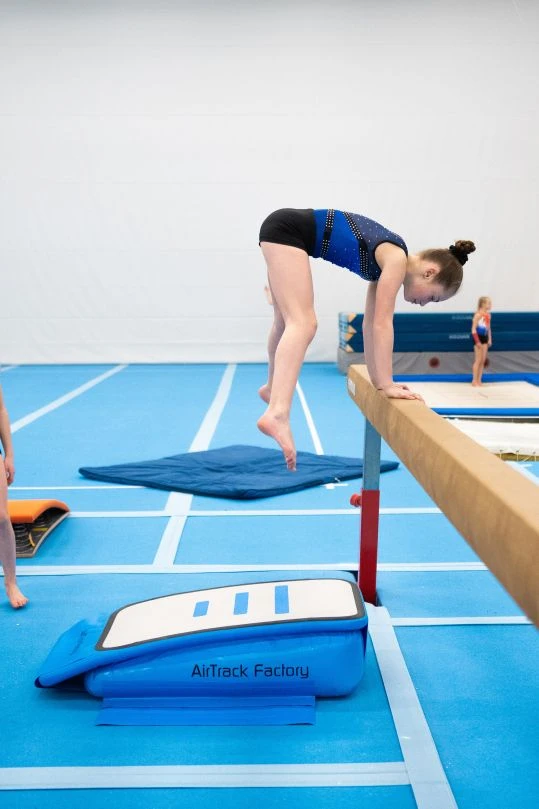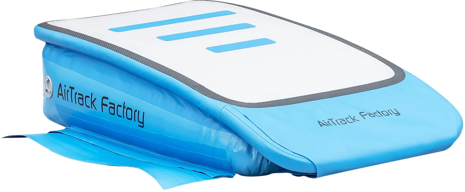 Aufblasbares Sprungbrett mit individuell regulierbarer Absprunghärte für unterschiedliche Nutzer- & Altersgruppen. Stabil auf Bodenturnbahnen per Klett oder auf Turnhallenböden per Saugnapfhalter zu befestigen.