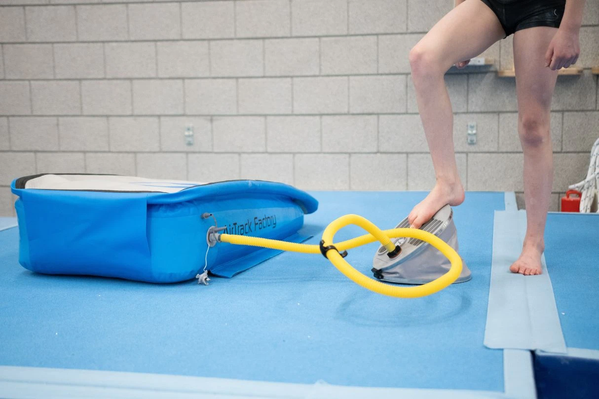 Aufblasbares Sprungbrett mit regulierbarem Luftdruck für unterschiedliche Altersgruppen.