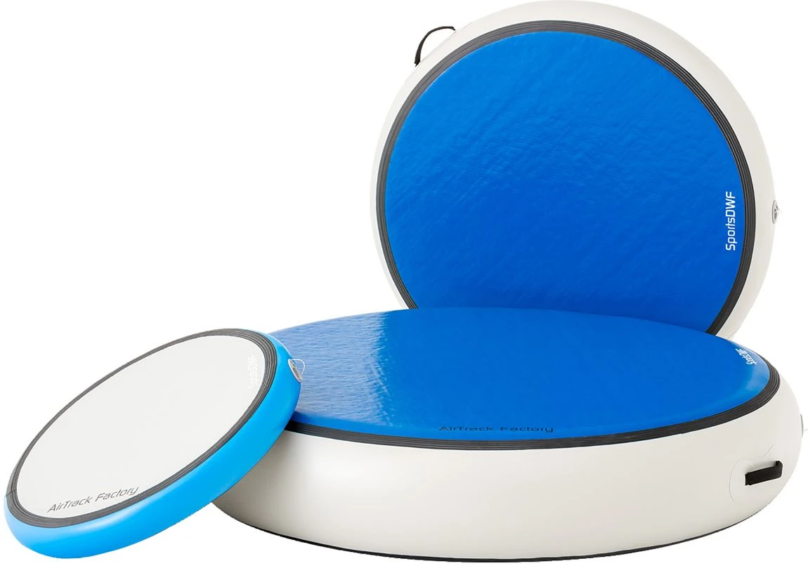 Die AirTrack Factory AirSpots sind kleine, runde Versionen der AirFloors. Durch ihre Größe und handliche Form kann man sie selbst in kleinen Zimmern verwenden. Sie sind ideal für Sprung- und Gleichgewichtsübungen.
