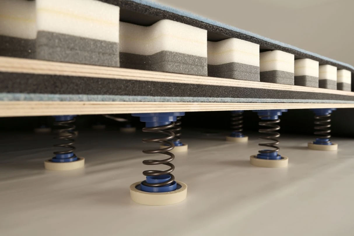 Mit dem Bänfer System Wiemers sind höhere Schwierigkeiten möglich; zugleich reduziert es die auf den Körper wirkenden Kräfte. Die Unterkonstruktion besteht aus einer doppelten Trägerschicht, bei der die Unterplatte mit der Oberplatte durch eine Spezialschaumschicht verbunden ist. Die Unterkonstruktion erhält durch das Entfernen der Trägerschichten voneinander eine deutlich höhere Biegesteifigkeit (Prinzip des Doppel T-Träger), was eine bessere Übersetzung der Energie durch die Federn auf die Sportler bedeutet. Durch das geringere Gewicht zwischen den Trägerschichten wird die auf den Athleten wirkende Kraft bei Absprung und Landung reduziert.