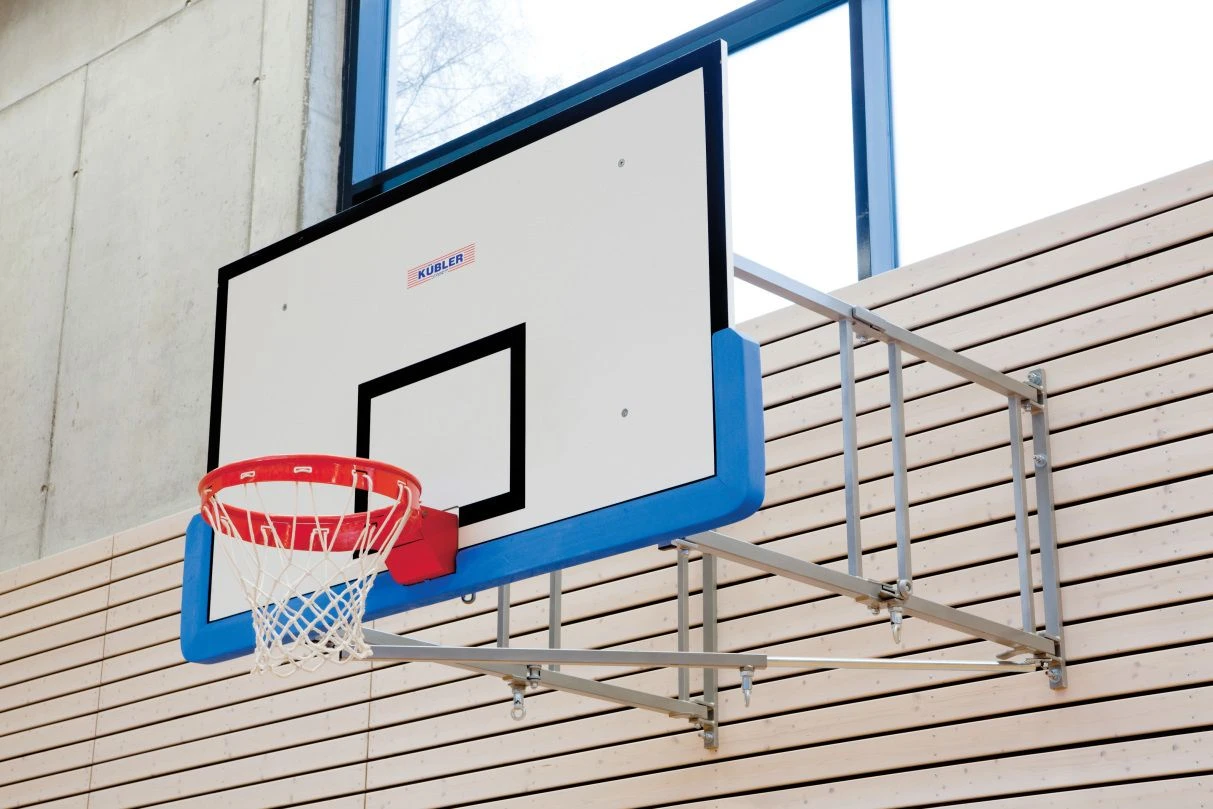 Basketball Wandanlagen finden häufig Verwendung in Turnhallen für den Schulsport. Damit die Wandanlage bei der Ausübung anderer Sportarten oder Veranstaltungen nicht stört, ist diese Basketball Wandanlage zentrisch klappbar. Die solide Konstruktion aus einem Stahlrohr entspricht den Vorgaben der DIN EN 1270. Die Basketball-Wandgerüste sind mit einer Ausladung von 170 cm oder 225 cm erhältlich.