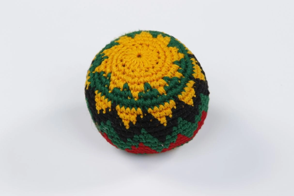 Ø ca. 55 mm, ca. 80 g, im Rasta-Look, ideal auch als Footbag! Obermaterial aus Baumwolle, Füllung aus Kunststoffgranulat. Lieferung farbig sortiert.