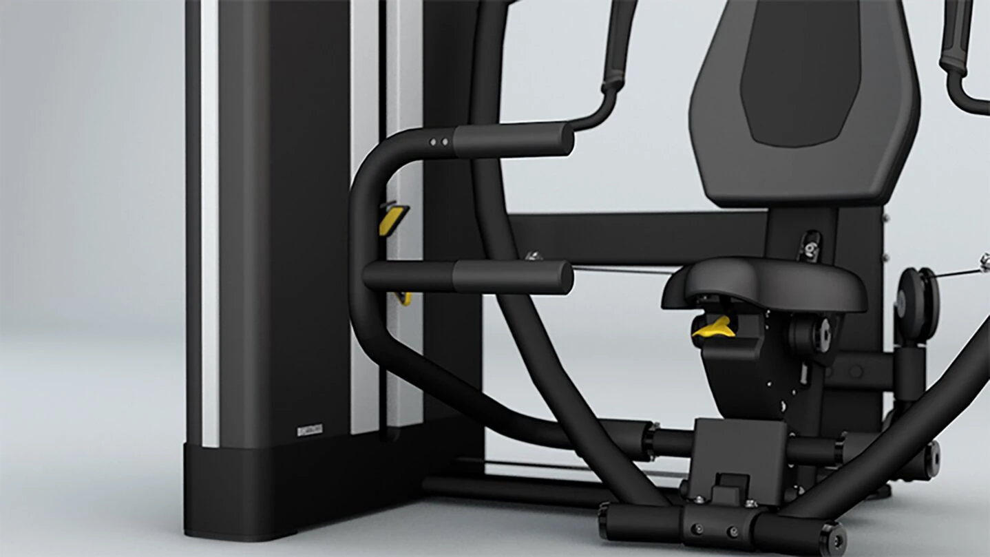 Die Brustpresse bietet ein robustes Gewichtsstecksystem mit bis zu 112 kg Gewicht (erweiterbar auf 135 kg) und ein langlebiges Riemenübertragungssystem für ein gleichmäßiges und leichtläufiges Trainingsgefühl. Die hochwertige Polsterung gewährleistet Komfort während des Trainings. Durch die Verstellmöglichkeiten des Sitzes findet jeder Sportler seine/ihre individuell passende Geräteeinstellung für eine biomechanisch korrekte Übungsausführung. Die Schwenkarme sind mit einem ergonomischen Griffdesign mit zwei Greifmöglichkeiten ausgestattet und individuell beweglich und ermöglichen so ein ein- oder beidarmiges Training. Mithilfe des robusten Lastlösepedals kann das eingestellte Gewicht kontrolliert angehoben und abgelegt werden.