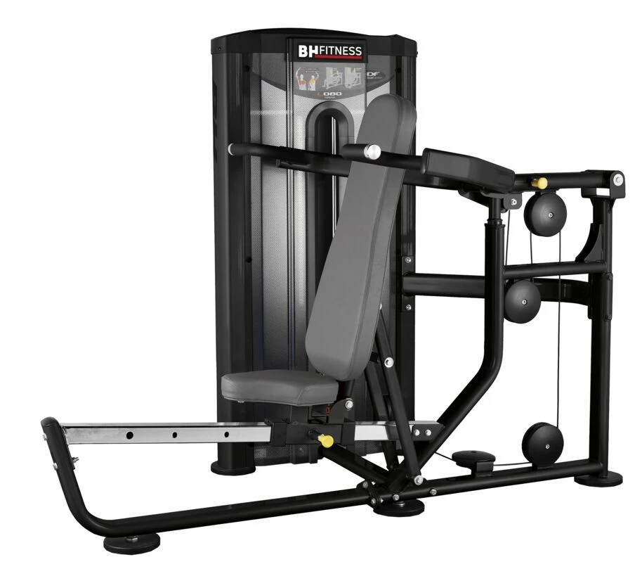 Die Brust-/Schulterpresse bietet ein robustes Gewichtsstecksystem mit bis zu 90 kg Gewicht. Die hochwertige Polsterung gewährleistet Komfort während des Trainings. Durch das einfache Verstellen der Position von Sitz und Rückenlehne kann die Trainingsposition, und somit die Art der Übung, schnell angepasst werden. Der Schwenkarm kann in vier verschiedenen Positionen voreingestellt werden. Ergonomische, gebogene Multipositionsgriffe ermöglichen eine variable Übungsausführung.