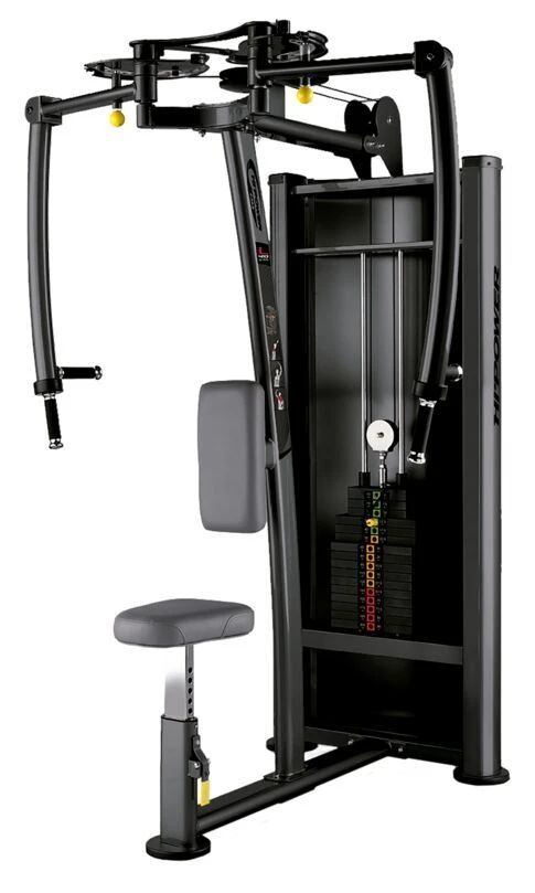 Die Butterfly-Maschine bietet ein robustes Gewichtsstecksystem mit bis zu 91 kg (erweiterbar auf 125 kg) Gewicht. Die hochwertige Polsterung gewährleistet Komfort während des Trainings. Durch das einfache Verstellen des Sitzes kann das Gerät auf jeden Sportler angepasst werden. Zwei Griffe je Seite mit unterschiedlicher Ausrichtung ermöglichen eine variable Übungsausführung. Geeignet für die Durchführung von Butterflys und Reverse-Butterflys.