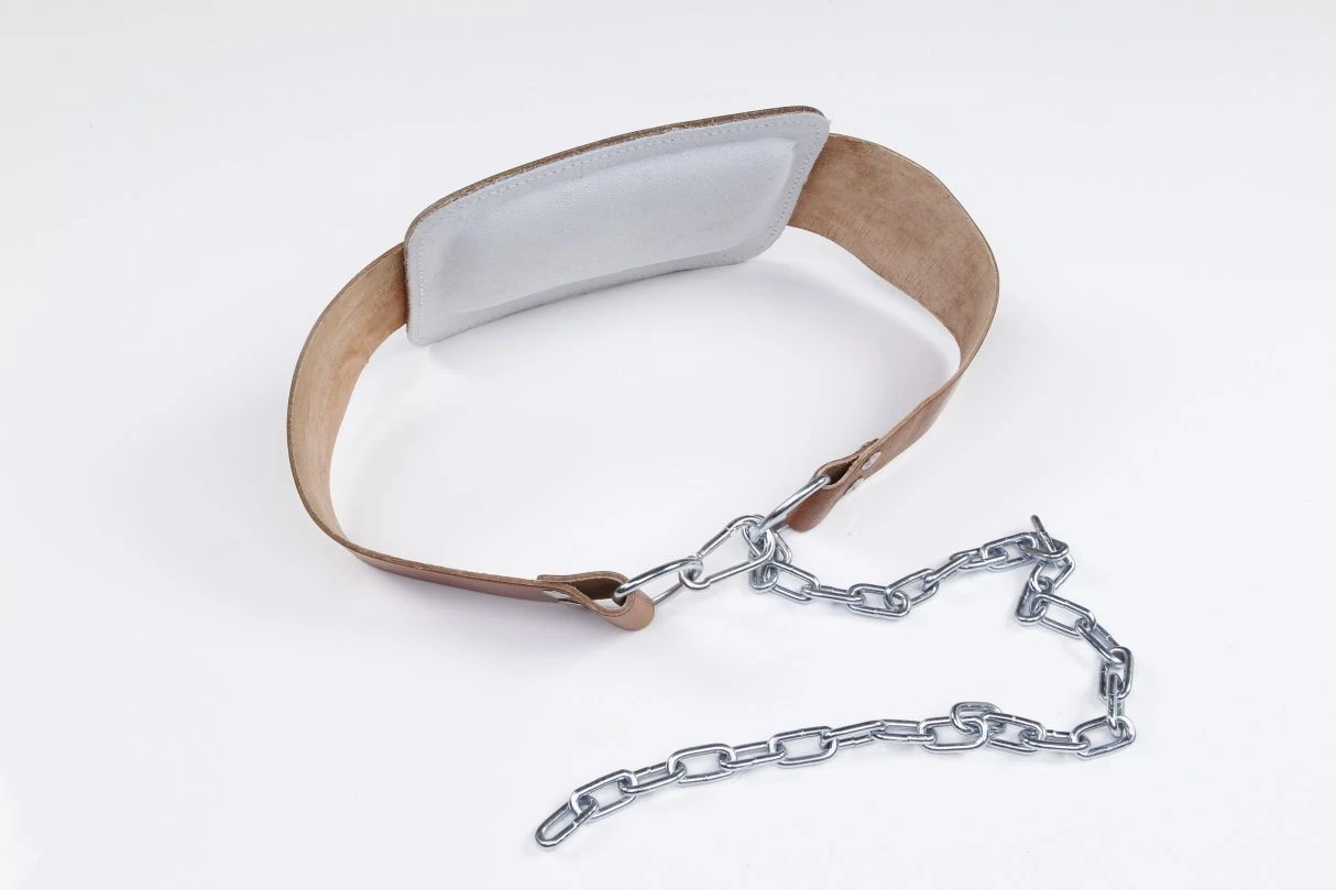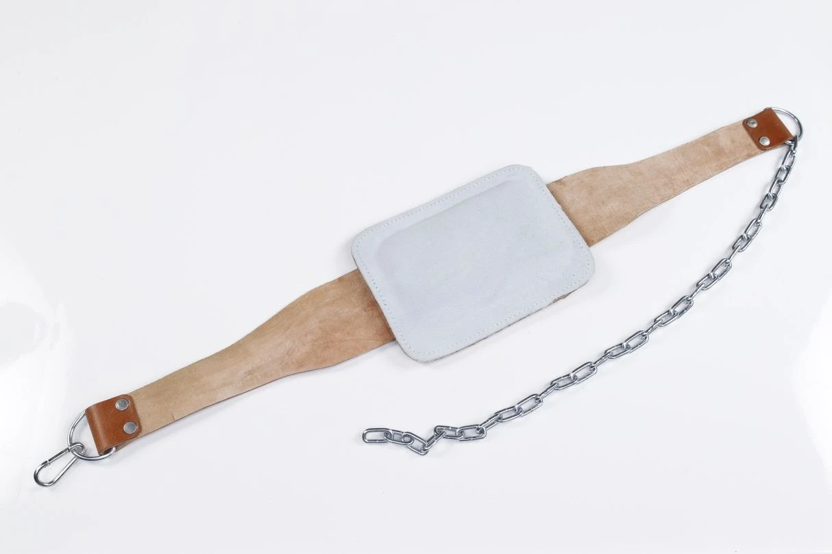 Professioneller Dips-Gürtel aus echtem Leder. Der Gürtel ermöglicht das Anbringen von Zusatzgewichten bei Dips, um eine Steigerung der Trainingsbelastung für die Muskulatur von Brust, Trizeps und Schulter zu erzielen. Ebenfalls für Klimmzüge geeignet. Die Innenseite (Rücken) des Dipgürtels ist weich gepolstert.