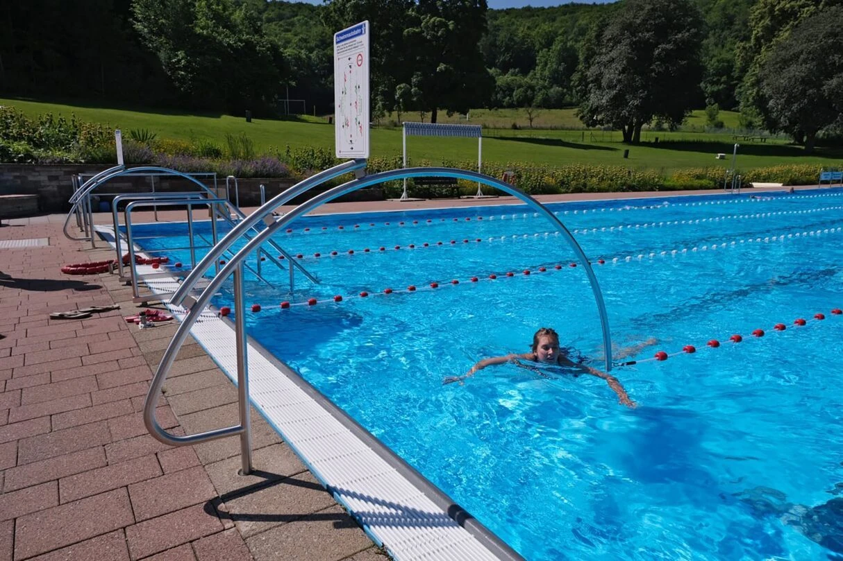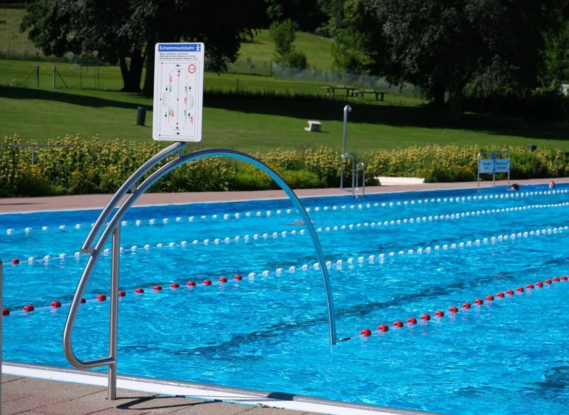 Der Bügel für die sogenannte Schwimmautobahn macht aus 2 Bahnen eine Art Kreisverkehr und Schwimmer können ideal Ihre Runden schwimmen. Der Bügel ist aus V4A Edelstahl inklusive einer Bodenhülse und einer Hinweistafel zu den Regeln. Für die Befestigung muss die Bahnenleine insgesamt 4 m gekürzt werden (2 m an jeder Seite) bei der Installation von 2 Durchschwimmbögen.