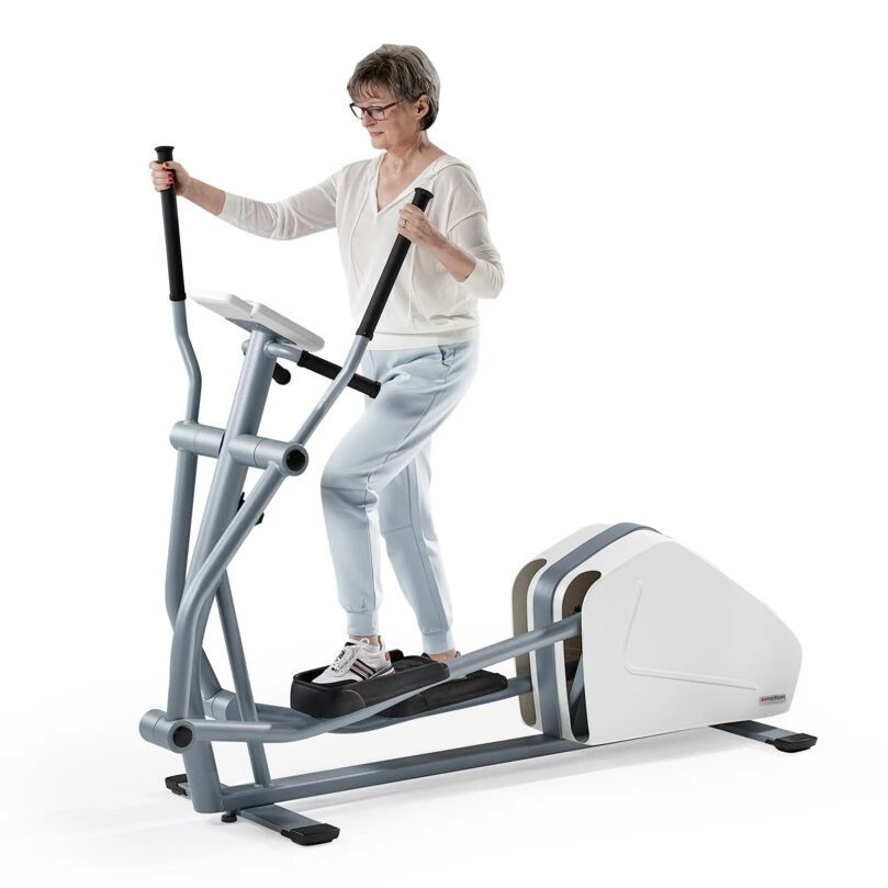 Der motion cross 900 hilft, Menschen mit überwiegend sitzender Lebensweise dazu zu bringen, sich aufzurichten und den ganzen Körper zu bewegen. Die geführte Bewegung ermöglicht einen schnellen und sicheren Einstieg in das Training. Lange Kurbeln und eine ergonomische Verbindung von Arm- und Beinbewegung sorgen für einen schwungvollen Schritt und eine angenehme Bewegung. Eine einstellbare Drehzahlbegrenzung und das automatische Abbremsen der Bewegung am Ende des Trainings sind höchst willkommene Sicherheitsmerkmale. Die Übung ist leicht zu erlernen, so dass nur wenig Personal gebunden wird. Im Vergleich zu anderen Geräten auf dem Markt ist der Bewegungsablauf sehr gleichmäßig und gelenkschonend. Da dieses Gerät optional auch als Medizinprodukt erhältlich ist, ist die niedrige Mindesteinstiegshöhe von 17 cm sehr vorteilhaft.