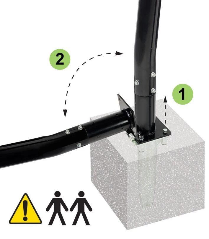 Die Anlage wird fest im Boden verankert, kann nicht mehr verschoben werden, erhält dadurch jedoch eine extreme Stabilität.