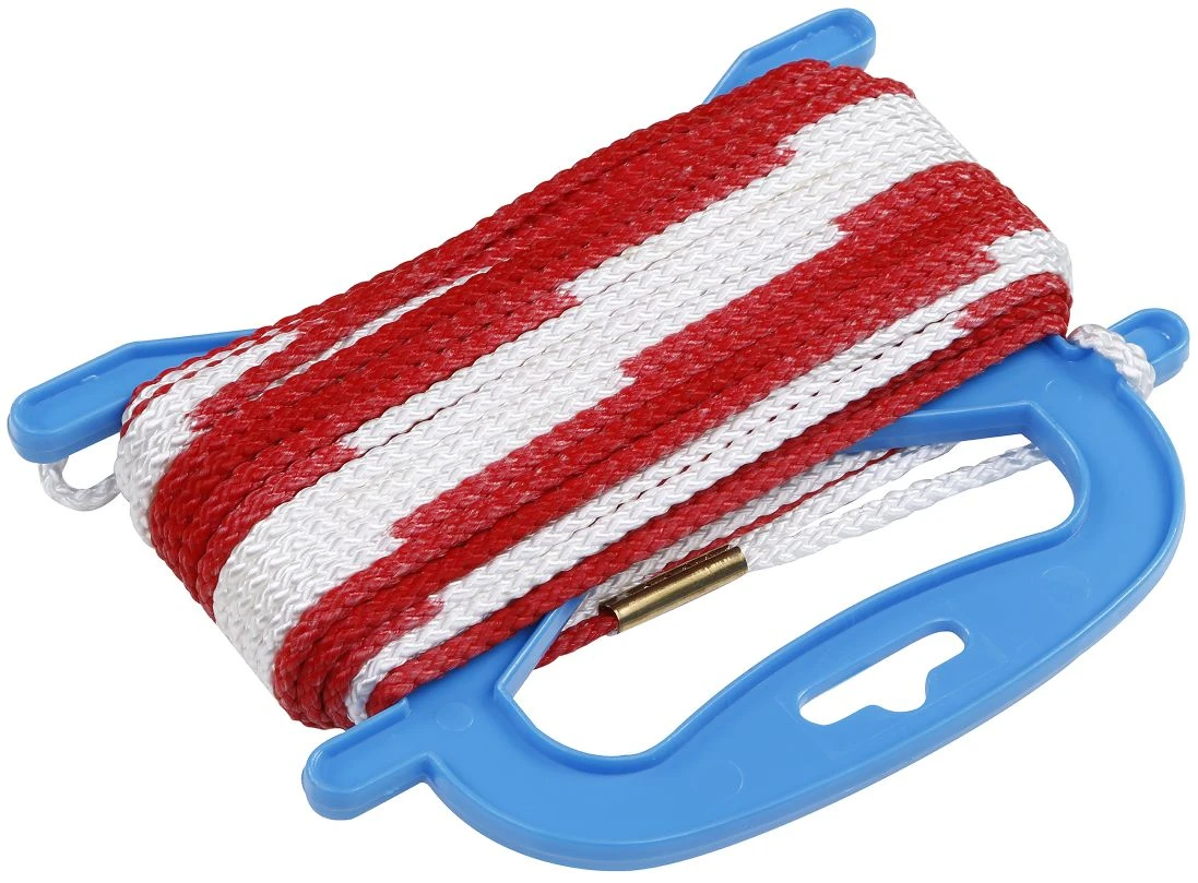 aus 5 mm starker Nylonkordel geflochten, im Abstand von 20 cm farblich abgesetzt (verschiedene Kontrastfarben zum Einsatz je nach Lichtverhältnissen), an beiden Enden mit Schlaufen, 21 m lang.
