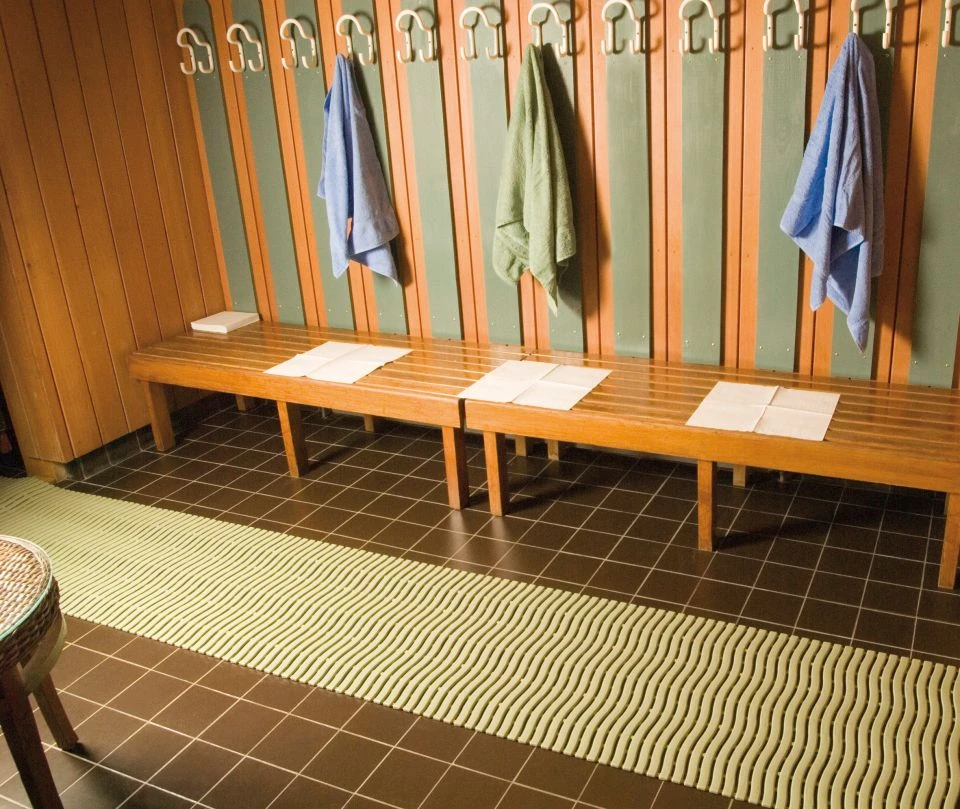 Hygienischer und rutschfester Nassraumbodenbelag für Schwimmbad, Sauna, Umkleide, Solarium, etc. Durch Verbindungsclips lassen sich auch breitere Flächen mit dem Durowalk problemlos auslegen. Der Bodenbelag zeichnet sich durch seine Rutschfestigkeit, einfache Reinigung und hohe Hygiene sowie einer hohen Temperaturbeständigkeit aus.