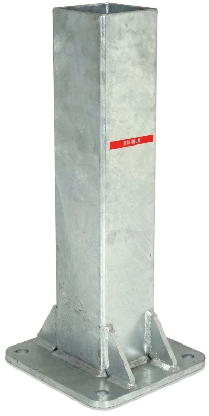 Bodenhülse zum dauerhaften Aufschrauben auf ein Fundament. Pro Hülse werden 4 Verbundanker benötigt (Art. V1806, nicht im Lieferumfang enthalten).