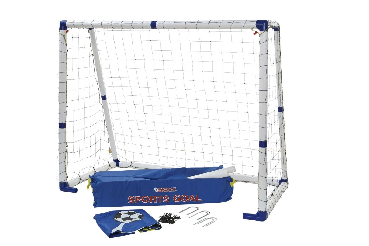 Das Freizeittor gibt es in verschiedenen Varianten und mit den beliebtesten Torgrößen für Freizeit- und Hobby-Fußballer. Die Konstruktion besteht aus 53 mm starken Kunststoffprofilen. Das Tornetz, Netzhaken und Bodenverankerungen sind inklusive.