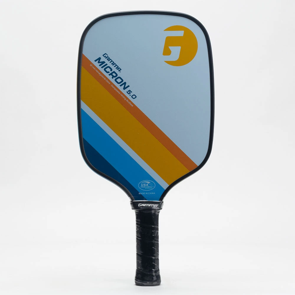 Elevate your game with the Gamma Micron 5.0 Paddle! This pickleball paddle features a broad face and unique micro bead texture to blend accessibility and precision. Its 12mm polypropylene core offers a generous sweet spot for responsiveness even on off-center hits. The unique spin technology on the surface makes it easier to switch up your shots and control the pace of play. Finished with a GAMMA Hi-Tech grip, the Micron 5.0 provides a no-slip fit during competition!