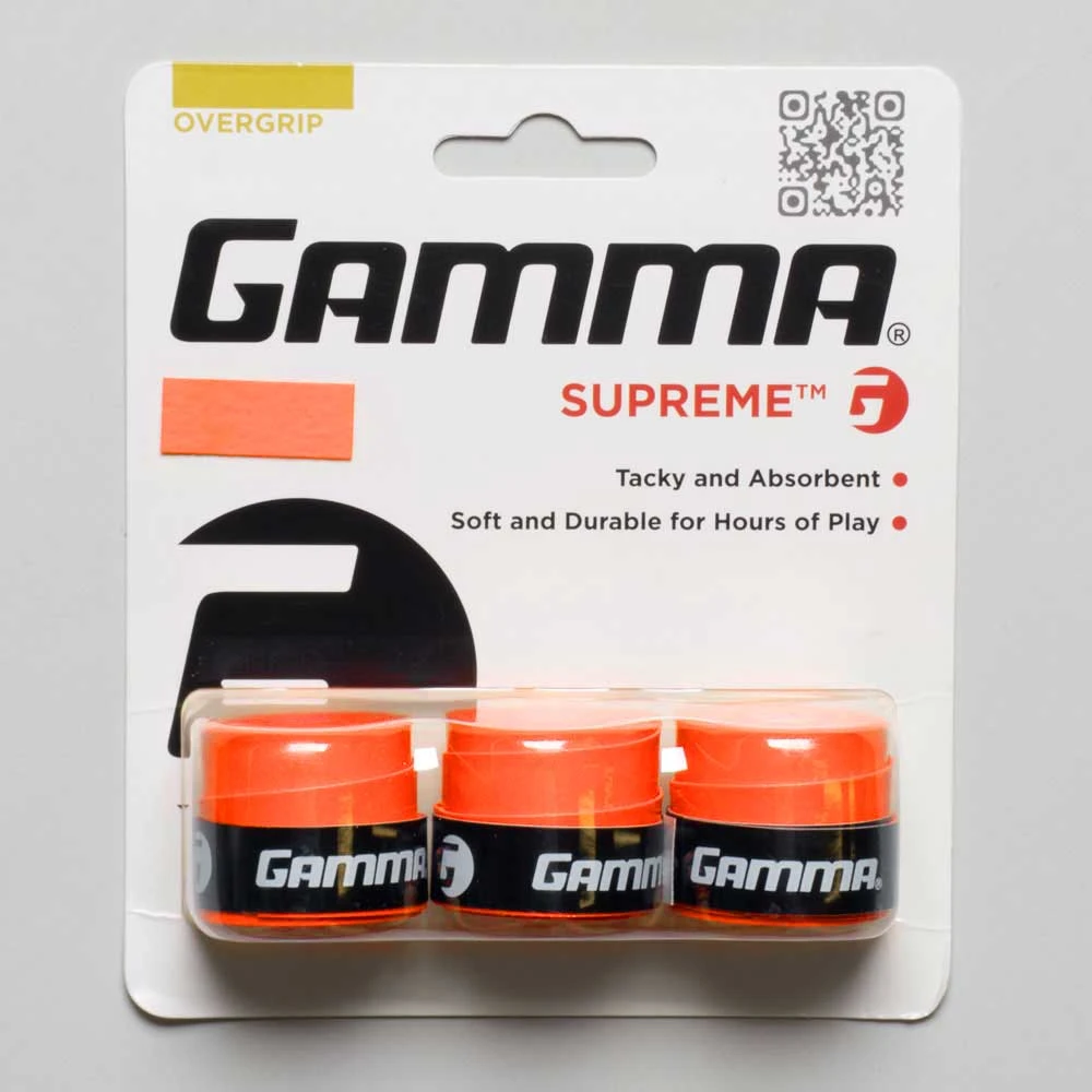 Gamma Supreme Overgrip offers excellent tackiness and absorbency! Its soft feel won’t rub or cause blisters, yet it is durable enough to stand up to many hours of play. A strip of finishing tape is included for each overgrip so it won’t come loose or unravel during fierce competition. Supreme Overgrip is available in multiple colors so you can express your individuality while you crush your opponents.