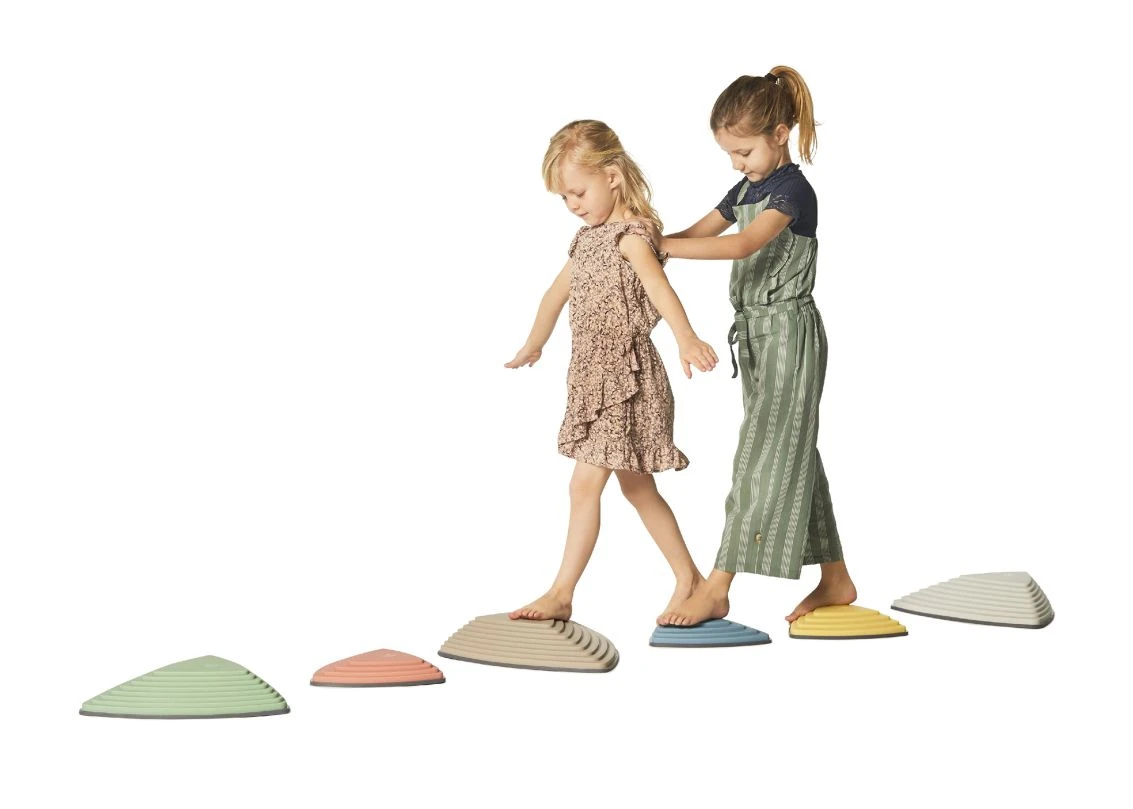 Die Flusssteine bieten eine einfache und schnelle Möglichkeit eine variable Bewegungslandschaft für Kinder zu gestalten. Fördert Gleichgewichtssinn, Körperwahrnehmung, Koordination und Motorik. Eine umlaufende Gummikante stellt einen festen Stand der Steine sicher. Eignet sich bestens für eine Nutzung barfuß, damit taktile Elemente optimal erfasst werden können.