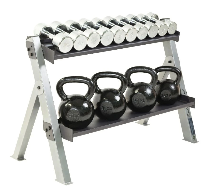 Die Kettlebell Ablage ist schwer belastbar und bietet 2 Ablageflächen für Kettlebells oder Kurzhanteln (die Ablagen können auch um 180° gedreht montiert werden). Die Ablage ermöglicht das schnelle Verstauen und die geordnete Aufbewahrung von Kettlebells nach dem Training. Geeignet für Fitness Studio und für Zuhause.