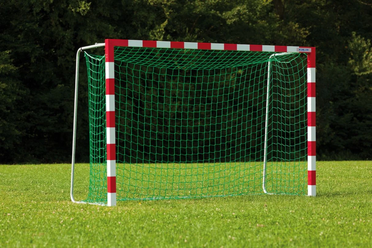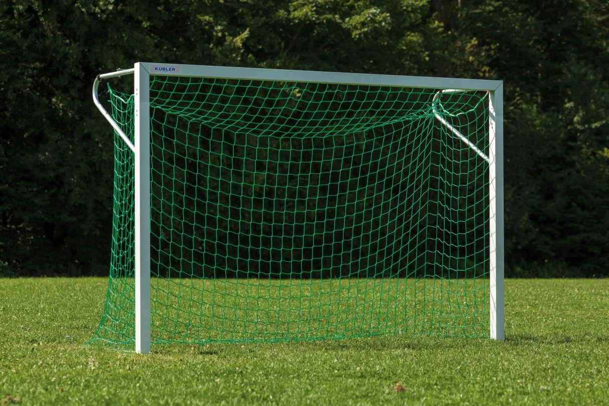 Das Tor hat für die Netzbefestigung eine vertiefte Profilnut. Die Netzhaken sind enthalten. Die Pfosten werden in lange Profilzapfen gesteckt und vierfach verschraubt. Die Montage geht schnell und ist ohne große Vorkenntnisse zu bewältigen. Das Kleinfeldtor wird ohne Tornetz und ohne Bodenhülsen geliefert.