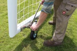 – Inklusive Antikipp-Bodenverankerung für Rasenplätze