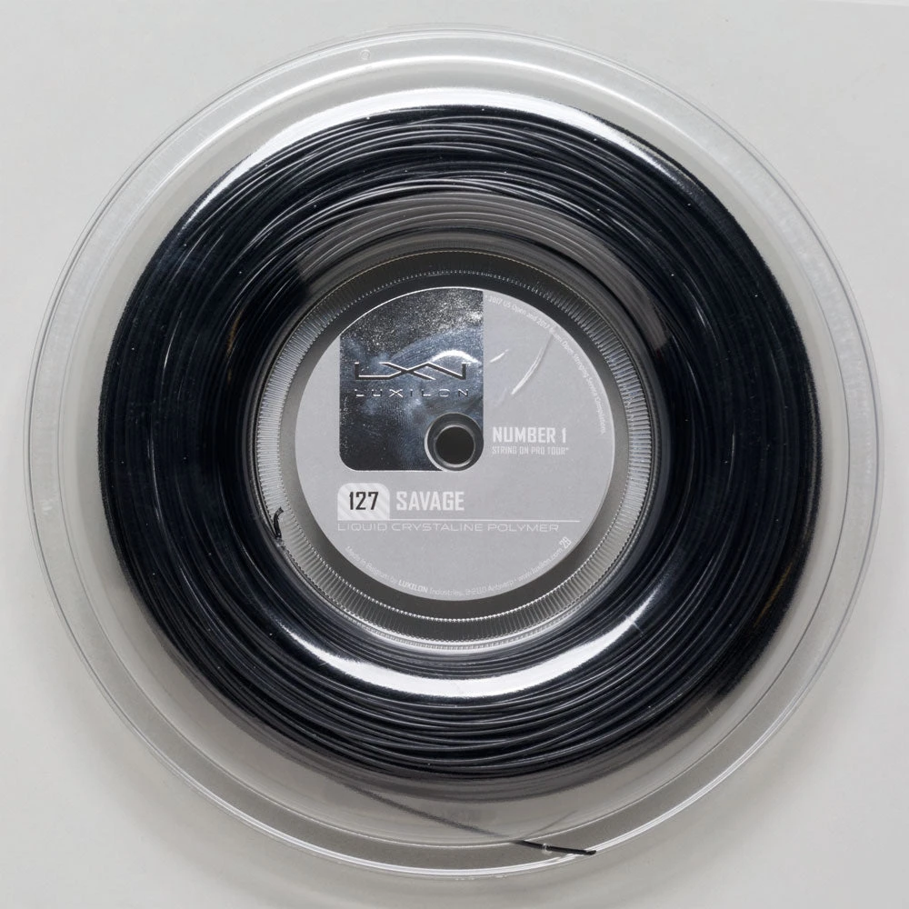 Polyesters. Players who want to hit hard, heavy shots can now unleash their power with Luxilon Savageâ„¢. Savageâ„¢’s unique six-sided shape provides extreme spin potential. Enjoy enhanced feel with Liquid Crystal Polymer construction.