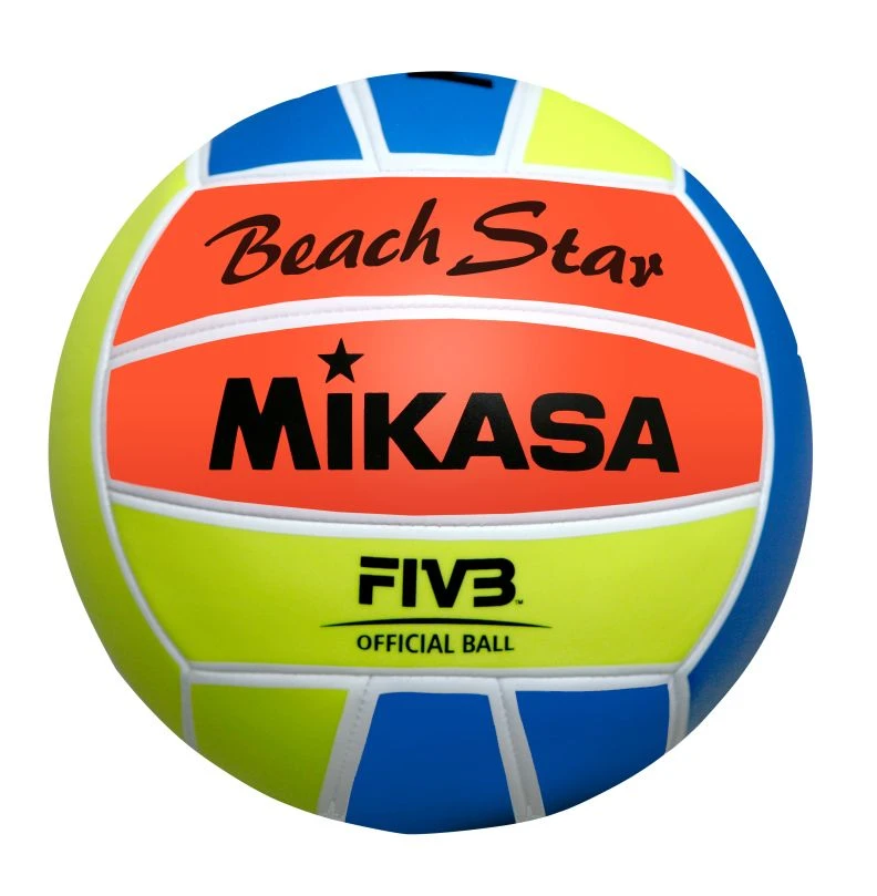 Der Mikasa BEACH STAR ist ein Freizeit-Beachvolleyball im innovativen Design. Er verfügt über sehr gute Spieleigenschaften und über das FIVB-Prüfzeichen. Der Beachvolleyball kommt in einer 18-Panel-Konstruktion, in neonleuchtenden Farben orange, blau und gelb. Diese verleihen dem Ball eine hervorragende Sichtbarkeit. Die Oberfläche des BEACH STAR besteht aus einem haltbaren und soften PU-Material und sorgt für ein gutes Ballhandling und einen angenehmen Hautkontakt. Die innere Schicht des Balles besteht aus einer Butylgummiblase, die die Form des Balles konstant rund hält.