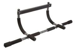 Multifunktionelles Türreck für Klimmzüge, Sit-ups, Liegestütze und Dips. Ohne feste Montage oder Schrauben ist das Türreck einfach in Türrahmen von 70-78 cm Breite anzubringen. Handgriffe mit komfortabler und hautfreundlicher Schaumstoffummantelung.