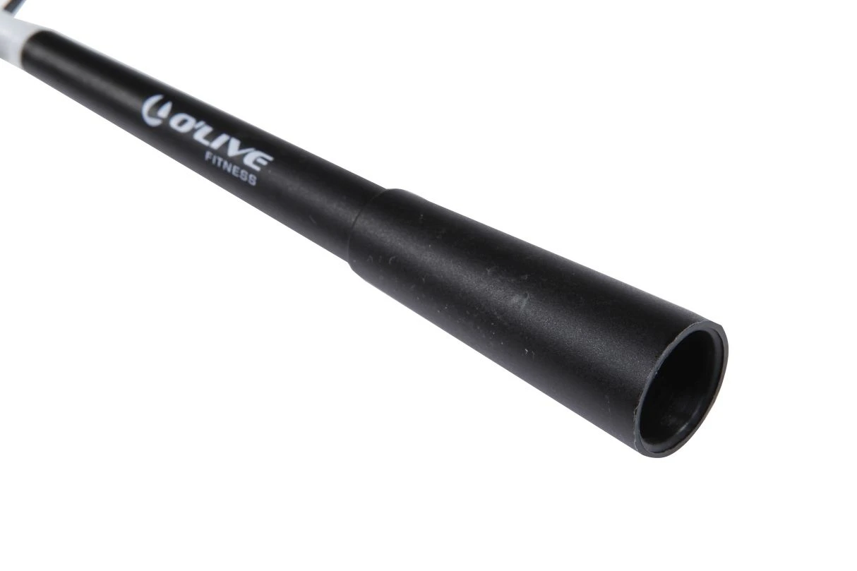 Leichtes, schnelldrehendes und haltbares Springseil. Griffe mit Metallstift zur Aufnahme des kunststoffummantelten Stahlseils.