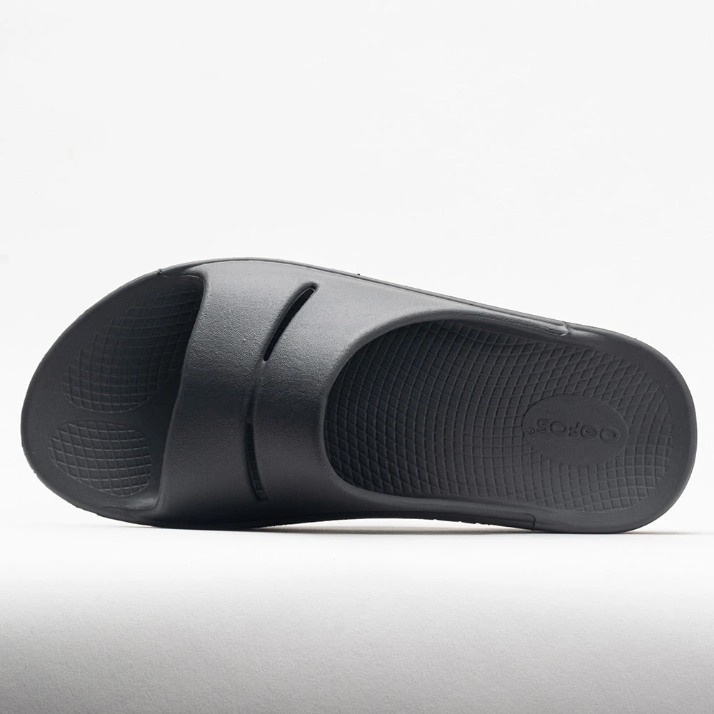 Treat your hard-working feet to better recovery in OOFOS Ooahh sandals. These slide-on sandals feature OOfoam™ technology that absorbs 37% more impact than your regular footwear. This special technology reduces the stress on your feet and facilitates the recovery process after physical activities.