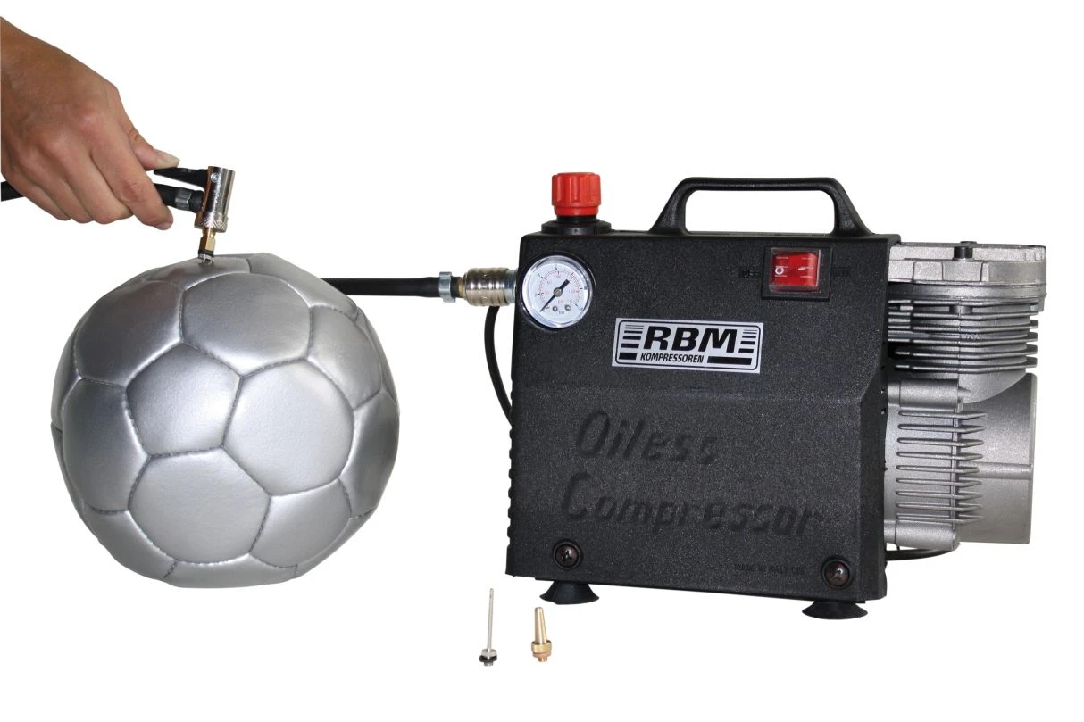 Diese Elektro-Ballpumpe hat eine Leistung von 2800 U/min bei max. Druck von 8 bar. Der ölfreie Membran-Ballkompressor hat ein eingebautes Manometer. Das Gehäuse besteht aus Alu-Druckguss inkl. Tragegriff. Die Grundausstattung besteht neben dem Ball-Kompressor aus einem 1,2 m langen Schlauch, einem Ventil-Halter und 2 Ballventilen (Patent- und Nadelnippel). Die Füllzeit von einem Fußball beträgt mit diesem Kompressor etwa 20 Sekunden.