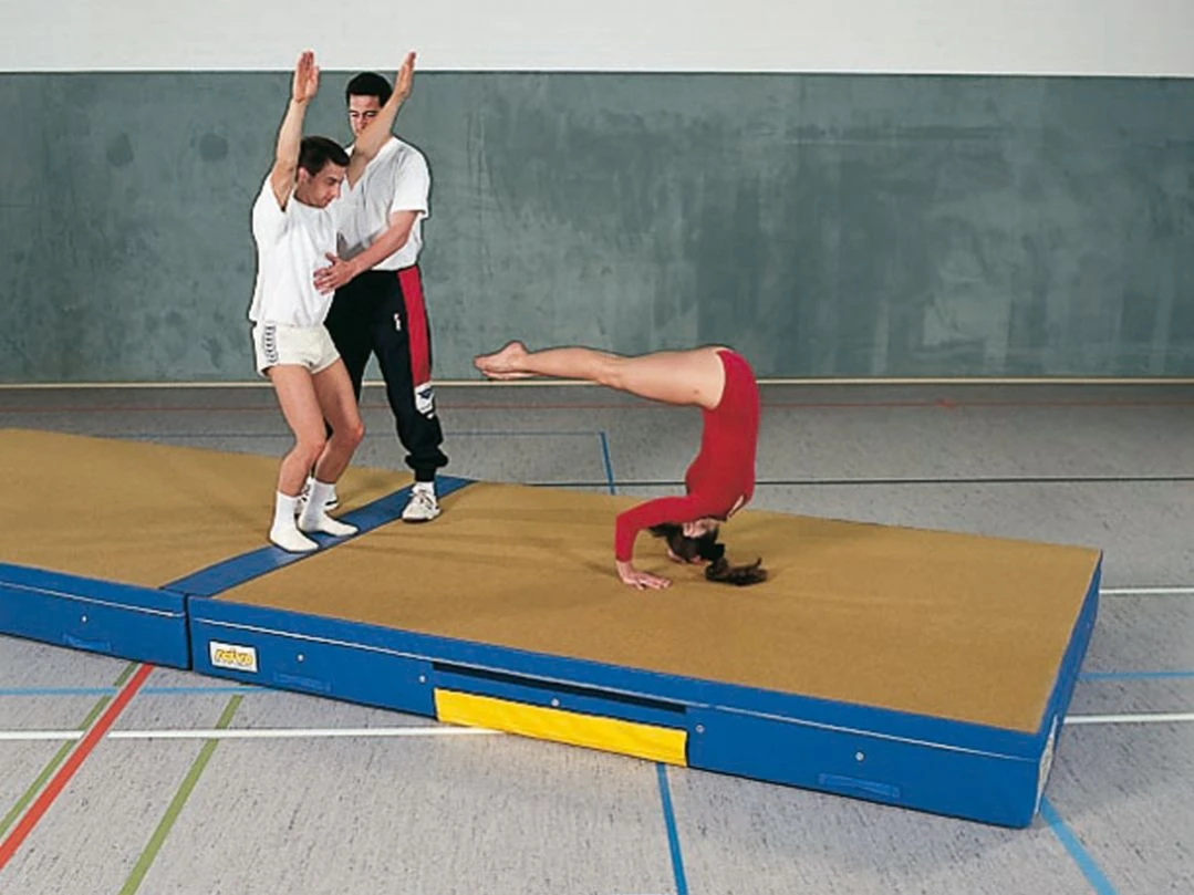 Die Reivo Kombi Wendematte ist aufgrund ihrer Doppelfunktion als Wendematte vielfältig einsetzbar. Nutzen Sie die gelbe Seite als Niedersprungmatte und die blaue Seite als Weichbodenmatte. So sparen Sie nicht nur Geld sondern zudem Platz in der Sporthalle und im Geräteraum.