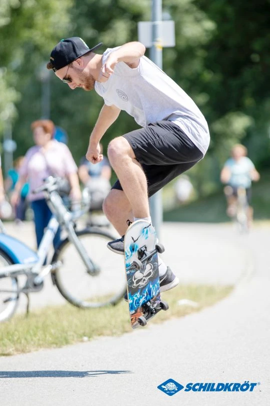 Das Allround-Board aus der neuen Schildkröt Skateboard-Line. Es bietet ein wertiges Deck aus 9-fach verleimten Ahorn und eine konkave Deckform mit Doppel-Kick und Premium-Griptape.