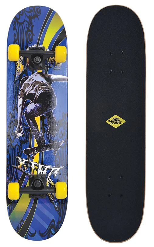 Freizeit-Board mit wertigem Deck (79 x 20 cm) aus 9-fachem Chinesischem Ahorn, konkave Deckform mit Doppel-Kick und Griptape, PU Rollen 54 x 36 mm (Härtegrad 85A) mit ABEC7-Kugellagern, farbig pulverbeschichtete 5V Trucks aus gehärtetem Alu. Gewicht 2,3 kg, max. Belastung 80 kg.
