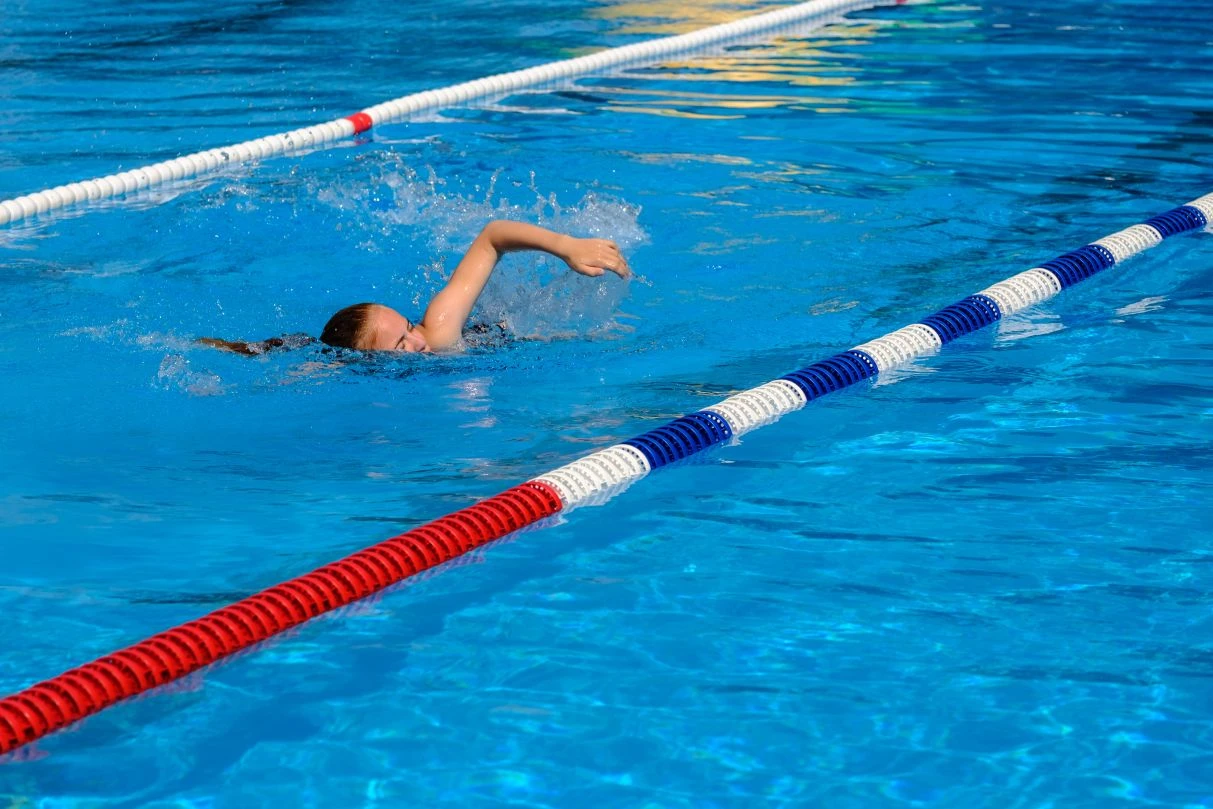 Wellenbrechende Schwimmleine mit freirotierenden Speziallochscheiben (Ø 10 cm) für eine schnelle Wasserberuhigung. Die Schwimmleinen aus Stahlseil haben sich vielfach in Wettkampf und Training bewährt. Die freirotierenden Disken, sog. Micro Donuts, bieten optimale Bedingungen auf allen Bahnen. Gemäß FINA-Vorschrift.