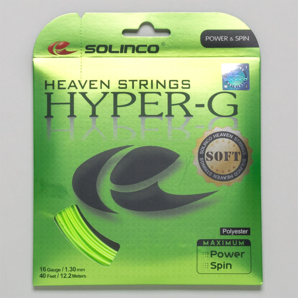 The newly developed Solinco Hyper-G Soft 16 1.30 is a versatile co-polyester string designed to provide excellent playability and control on the court. A unique softening formula generates impressive power and intense spin, giving players the edge they need during the match.
