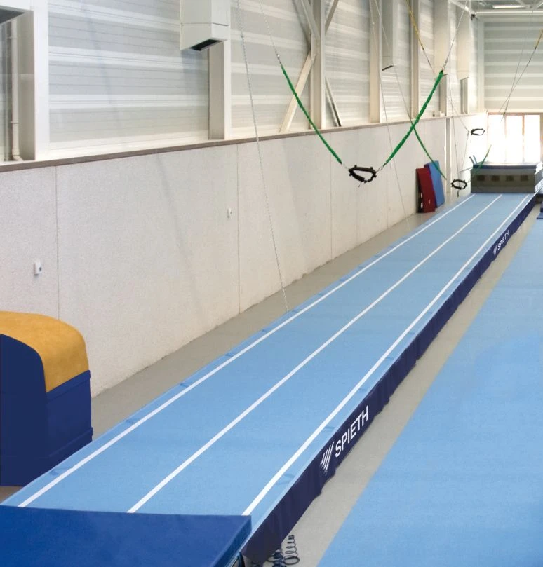 FIG zertifizierte Tumblingbahn der Marke Spieth Gymnastics. Die perfekt aufeinander abgestimmten Bauteile bewirken eine hohe Elastizität und eine besonders schnelle Reaktion.