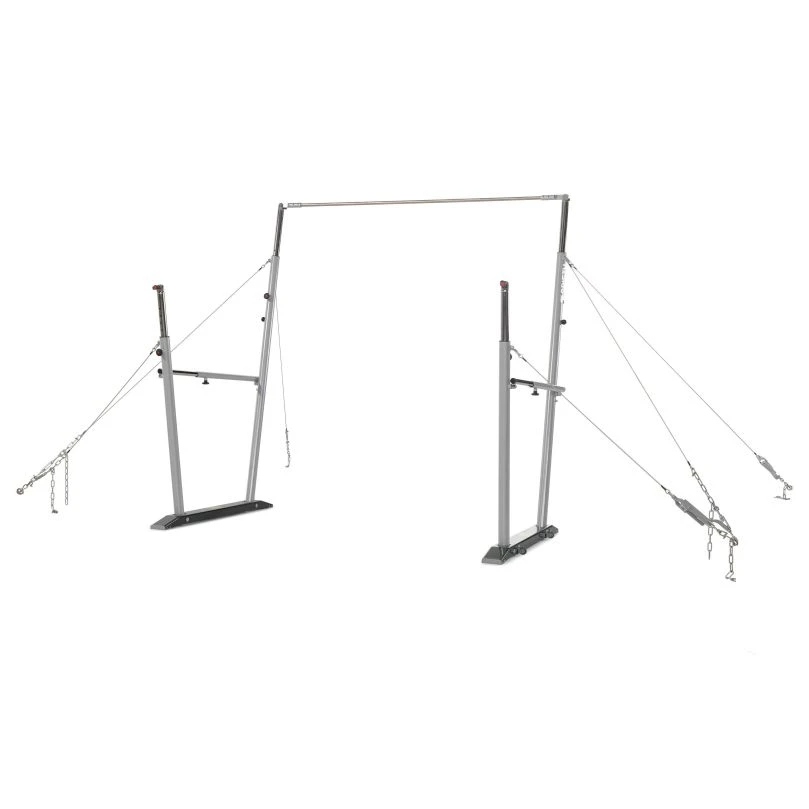 SPIETH® Stufenbarren KOMBI – der Trainingsstufenbarren mit Verspannung und der Möglichkeit einer zusätzlichen Nutzung als Reck. Durch den einfachen Ausbau des unteren Holms (Quicksnap Verschluss) kann der Stufenbarren auch als Reck (Einholmsystem) genutzt werden und bietet daher den praktischen Vorteil von zwei Turngeräten in einer Konstruktion.