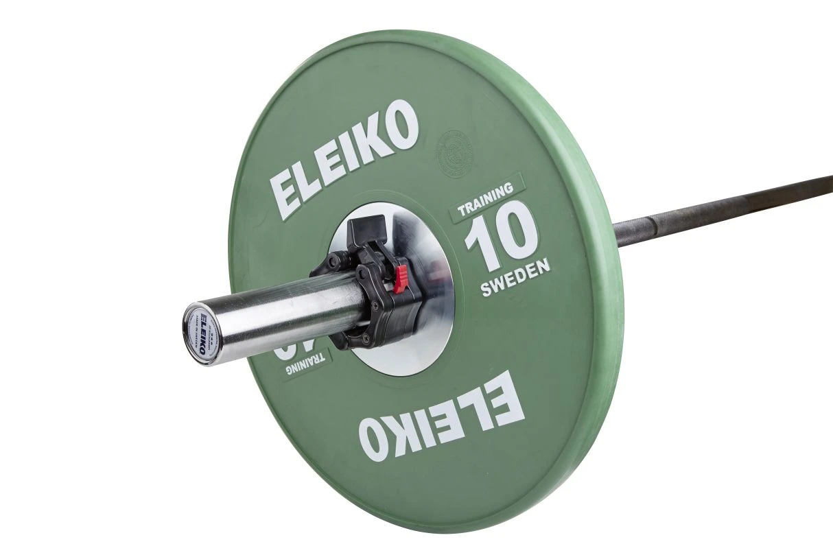 Hantelverschlüsse mit einfachem und sicherem Klapp-Mechanismus. Für einen festen Sitz ist die Innenseite mit rutschfesten Elementen versehen. Ein zusätzlicher Sicherungspin verhindert ein Lösen der Verschlüsse auch bei unsanftem Absetzen der Langhanteln.