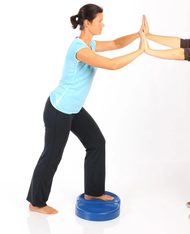 Balance-Trainer für Fitness und Therapie zur Verbesserung von Koordination, Balance und Gleichgewicht. Die genoppte Oberfläche sorgt zusätzlich für eine Fußreflexzonenmassage und steigert die Durchblutung. Egal ob stehend oder liegend, der luftgefüllte Aero Step bildet mit dem Luftkammersystem eine instabile, rutschfeste Unterlage und fordert daher den Körper ständig zur Stabilisierung und kräftigt dabei auch die tiefer liegende Muskulatur. Das Material des Aero-Step® ist sehr robust und daher auch für den Einsatz im Außenbereich geeignet.