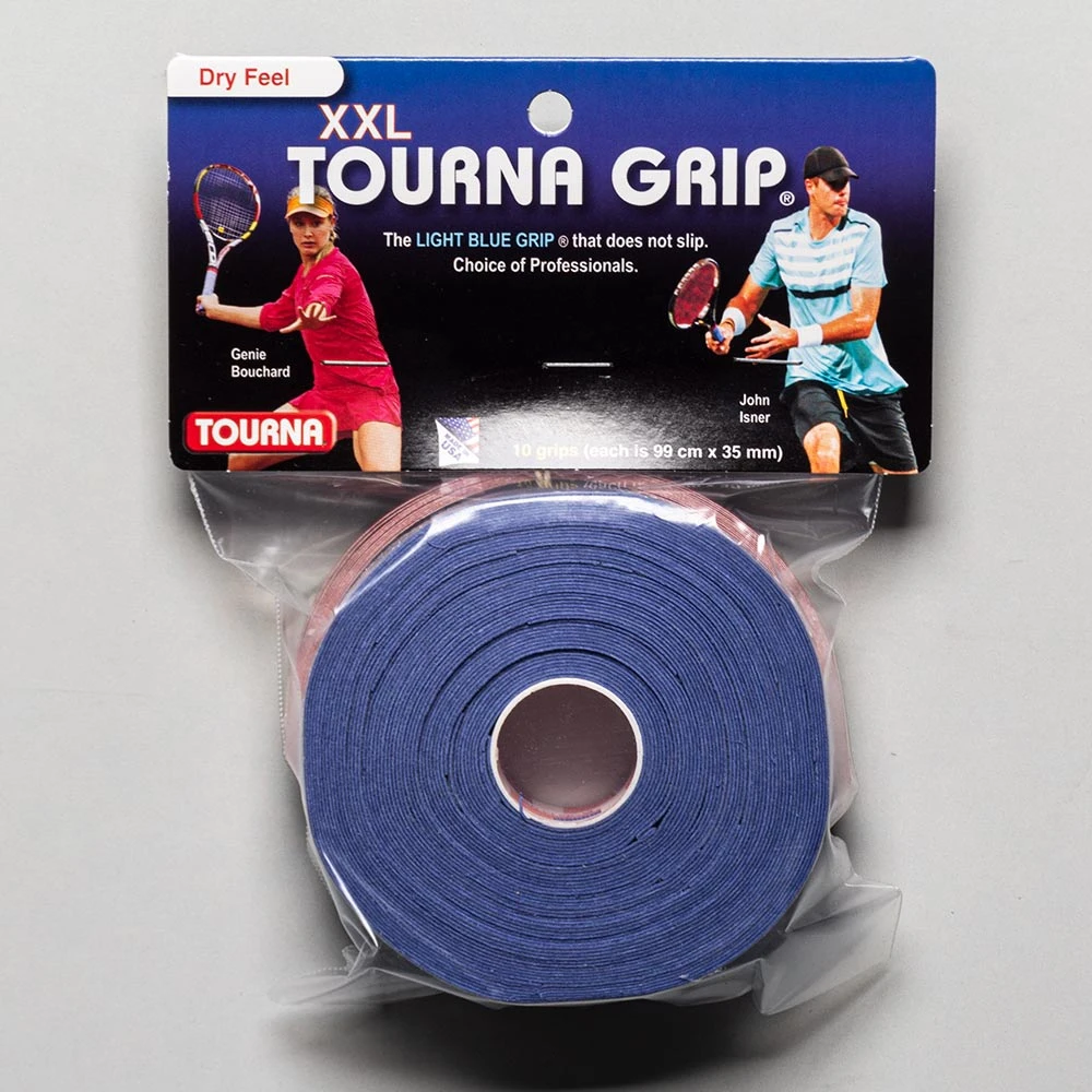 Tourna Grip XXL Overgrip 10 Pack is one of the most absorbent available. This overgrip is cut 40% wider to cover bigger handles and/or more overlap when wrapping. Both John Isner and Ryan Sweeting enjoy the benefits and performance of this overgrip.