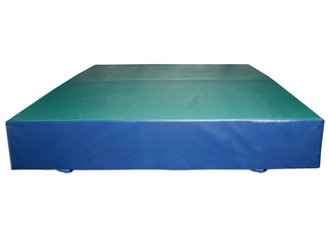 Überzug aus luftdurchlässigem, hautfreundlichem Lochgewebe. Seitenteile mit durchgehendem Reissverschluss, 4 Traggriffe, Klettbänder auf den Längs- und Breitseiten für sicheres und unverrutschbares Zusammenfügen von mehreren Sprungkissen. Unten ganzflächiger Gleitschutz.