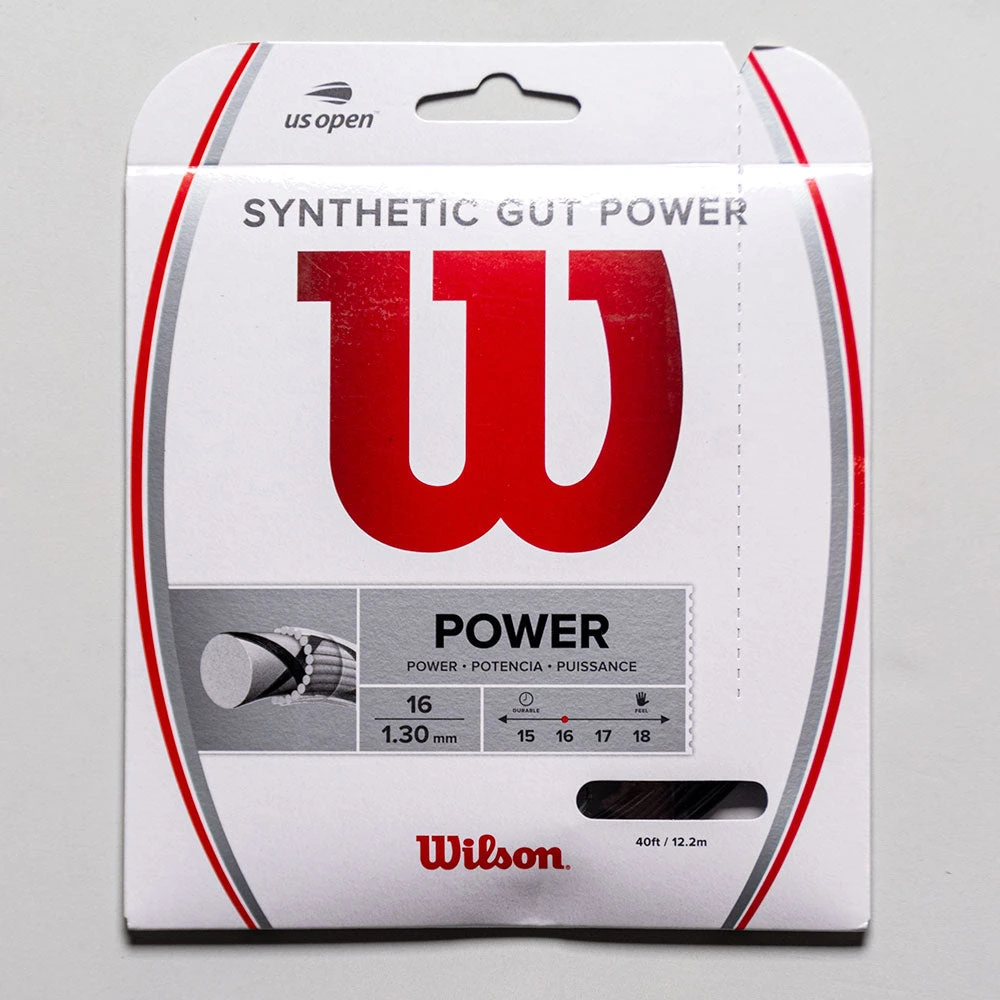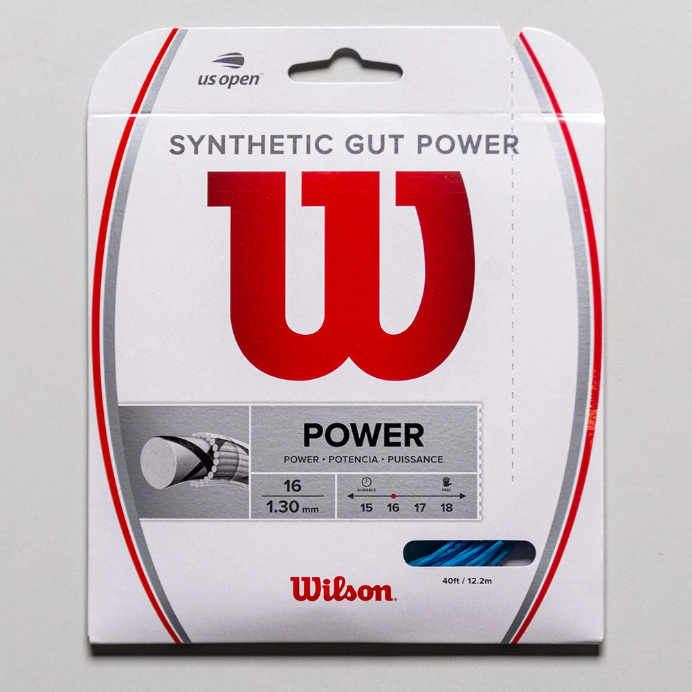 Wilson Synthetic Gut Power 16 tennis string combines durability and power. A high energy wrap contributes to the tough structure.